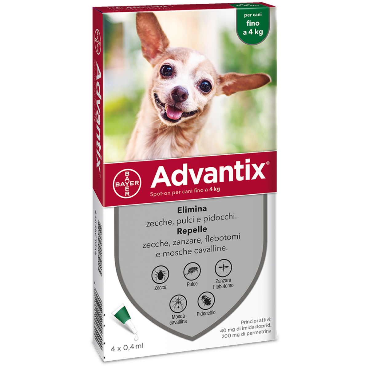 Infatti la singola fiala protegge il cane per un mese uccidendo i parassiti gia’ il giorno successivo al trattamento come pulci, zecche e pidocchi. Non usare su gatti, contenente imidacloprid e permetrina.