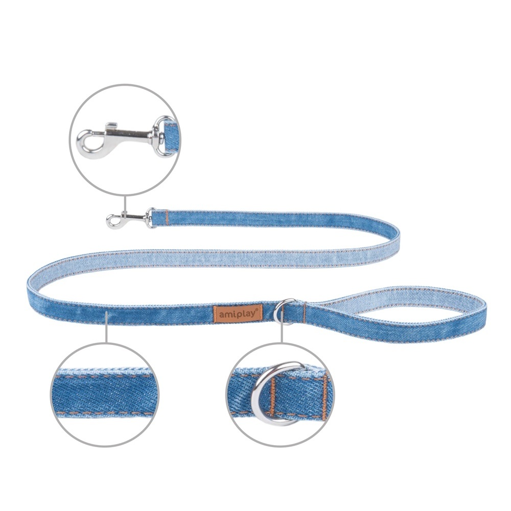 L’elegante guinzaglio Amiplay della linea Denim piacerà a tutti gli amanti degli accessori unici per la passeggiata del cane. Combinando l’abbigliamento del proprietario e del suo cane si crea una coppia unica tra uomo e cane. La serie Denim di Amiplay si caratterizza per la sua intramontabilità.