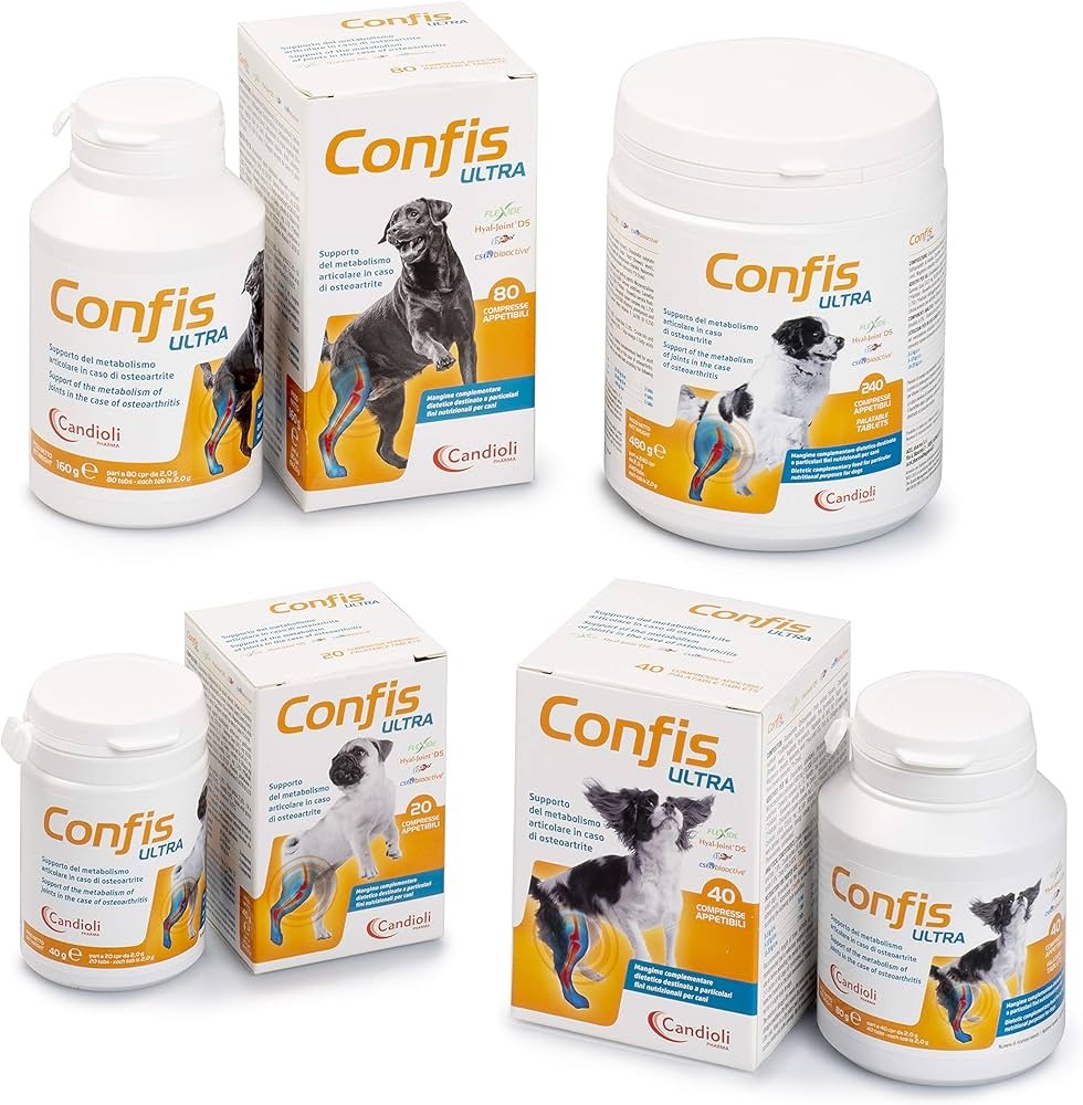 Confis Ultra è l’integratore alimentare dietetico di punta di Candioli, formulato per il supporto del metabolismo articolare in caso di osteoartrite nel cane. Grazie alla rivoluzionaria combinazione di ingredienti, agisce direttamente sulla salute della cartilagine, riducendo l’infiammazione e migliorando visibilmente la mobilità del tuo compagno a quattro zampe.