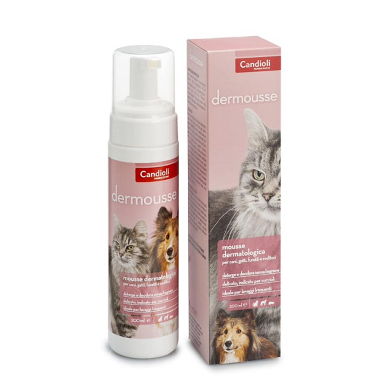 Candioli Dermousse è la schiuma detergente a pH fisiologico ideale per la pulizia quotidiana di cani e gatti. Grazie alla sua formulazione delicata, permette di igienizzare il mantello e la cute senza l’utilizzo di acqua e senza necessità di risciacquo.