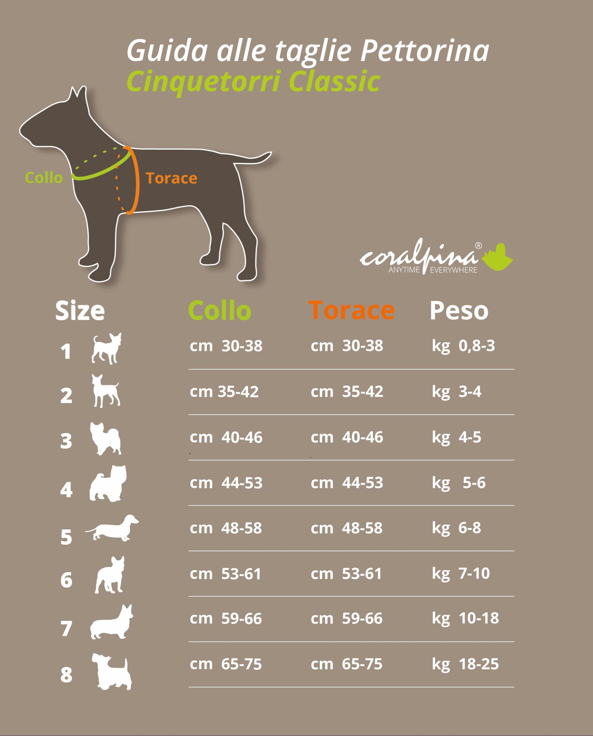 La Cinquetorri Classic è particolarmente indicata per cani che presentano una circonferenza del collo simile a quella del torace (differenza massima del 22%).