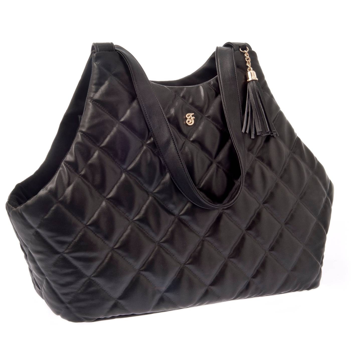 Finissima pelle sintetica trapuntata impreziosita dall’elegante dettaglio nappa tono su tono per i modelli Scarlett e Diva.