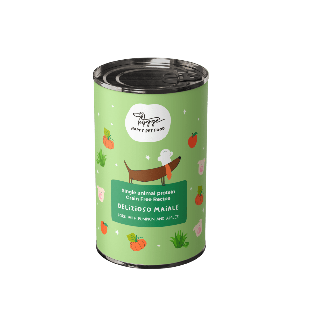 Descrizione Prodotto L’umido Hygge Maiale con Zucca e Mele è un alimento completo e bilanciato che unisce i benefici di una singola fonte proteica animale alla naturale ricchezza di fibre e vitamine dei vegetali. La carne di maiale, altamente digeribile e appetibile, è accompagnata dalla zucca, preziosa per la regolarità intestinale, e dalle mele, che apportano antiossidanti naturali e vitamina C. Questa ricetta Grain Free è formulata per rispettare il benessere olistico del cane, offrendo un pasto gourmet sano, privo di cereali e additivi artificiali. È la scelta ideale per chi cerca un’alimentazione varia ma sicura per soggetti con sensibilità digestive.
