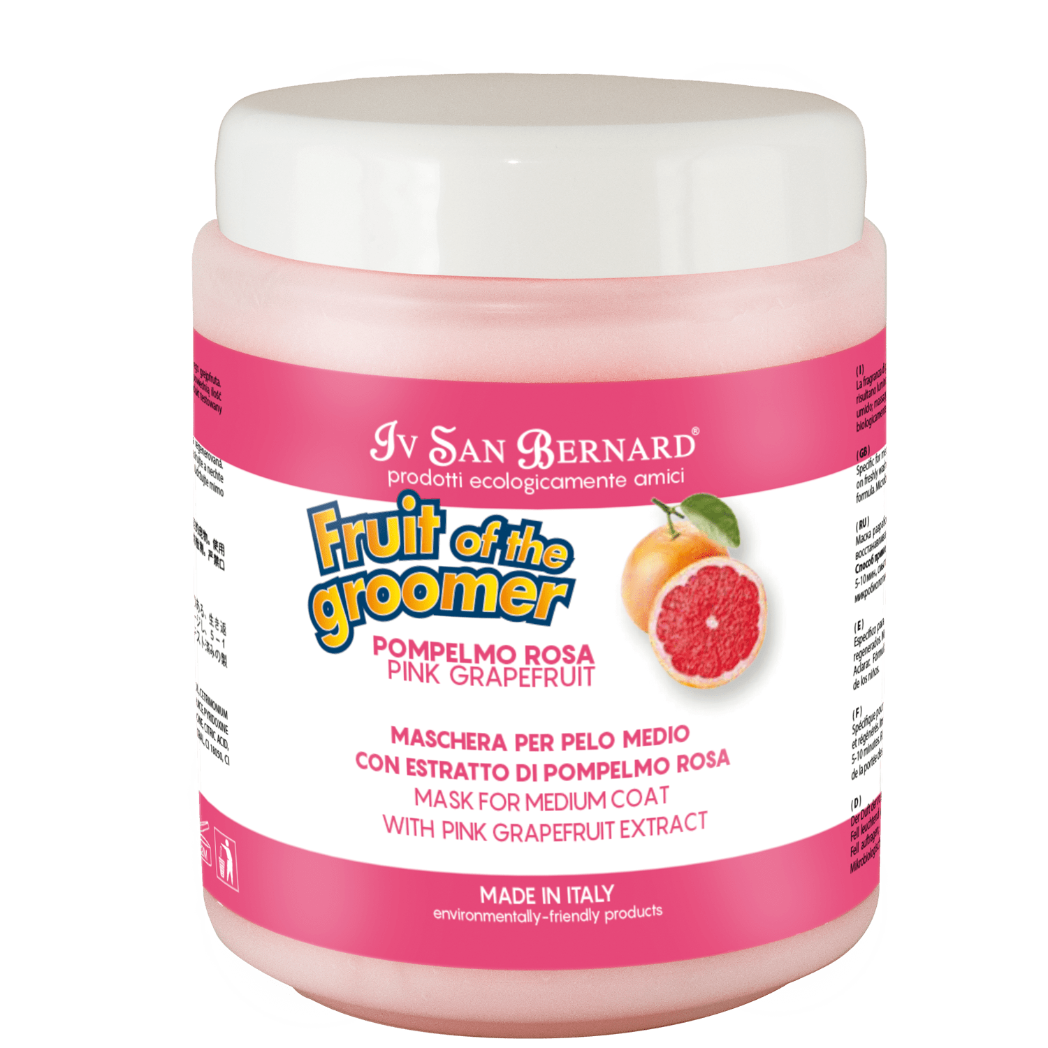 La fragranza di pompelmo rosa per una piacevole profumazione naturale. Con la maschera al pompelmo rosa i manti risultano luminosi e rigenerati. Specifico per pelo medio.