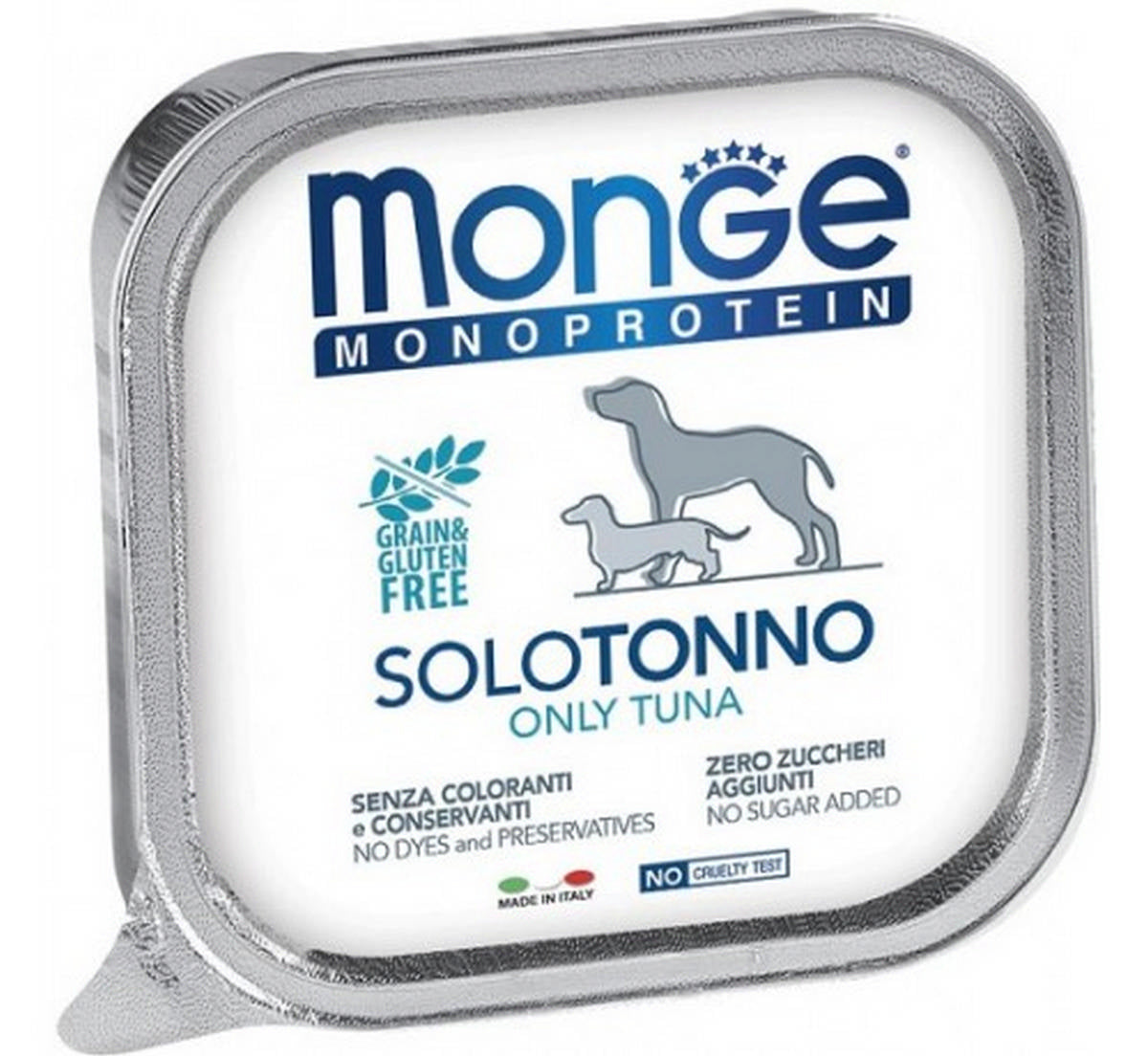 MONGE SOLO TONNO 150gr – Patè, monoproteico superpremium con carni di tonno selezionate di altissima qualità, prodotto 100% italiano, altamente appetibile, ricco di Vitamine A, E e D3 e con la garanzia della monoproteina: un solo tipo di carne per ogni ricetta. Naturalmente senza coloranti, conservanti e zuccheri aggiunti.