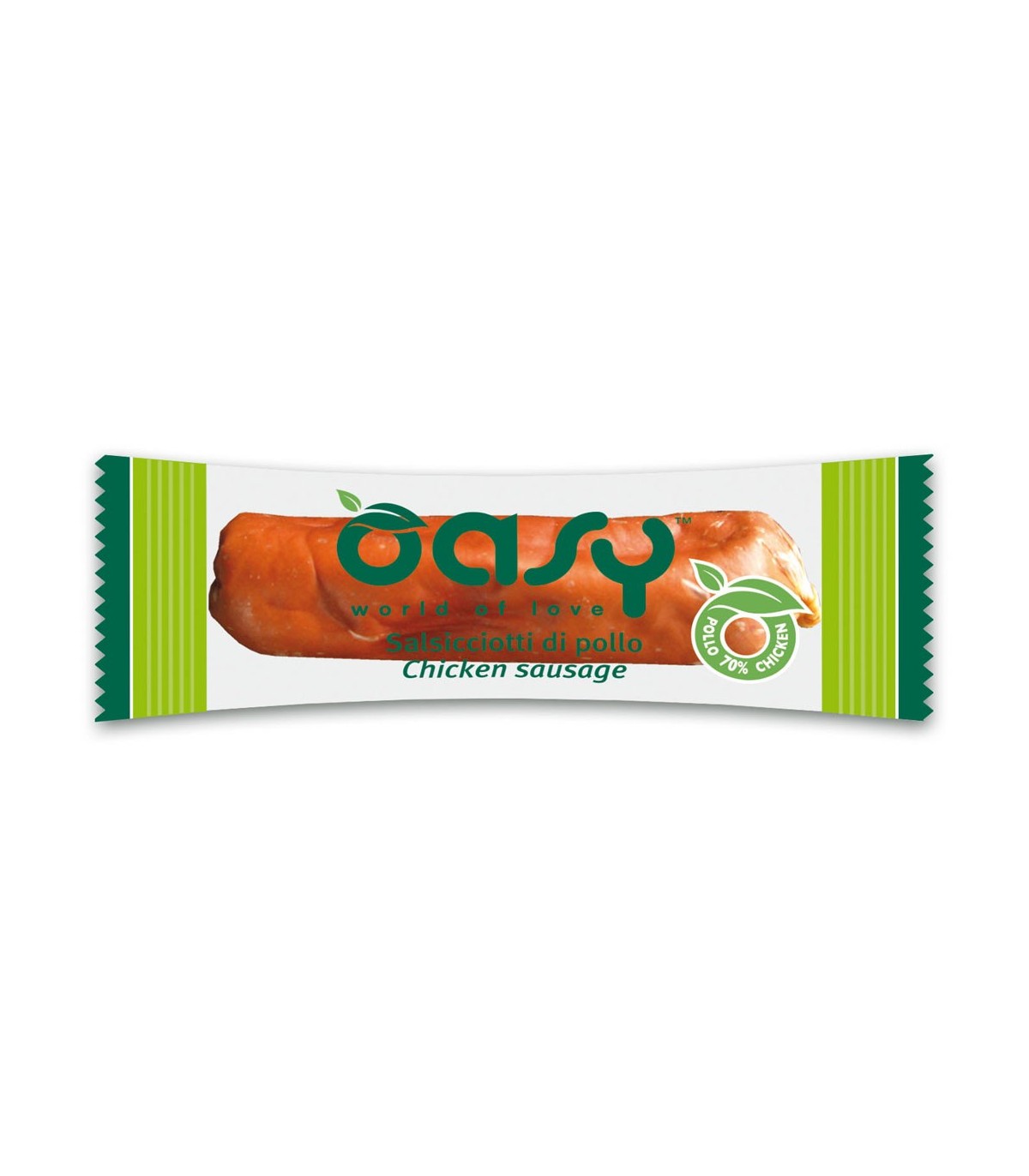 Oasy snack salsicciotti di pollo 8 gr è un alimento complementare per cani.