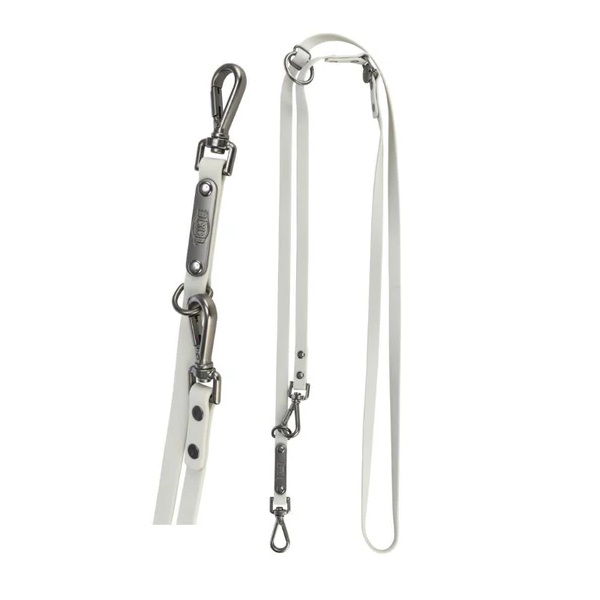 3 Regolazioni di Lunghezza: Grazie ai doppi moschettoni e agli anelli di posizionamento, puoi passare rapidamente dalla condotta corta al piede alla libertà dei 2 metri di lunghezza.